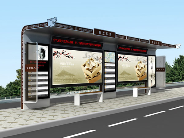 2、外观设计千篇一律:大量的不锈钢材质亭棚、大幅面的滚屏广告设计、站牌设计的布局字体也几乎相同,各城市区域的公交候车亭极其相似、毫无新意,甚至不同城市的公交候车亭千篇一律。